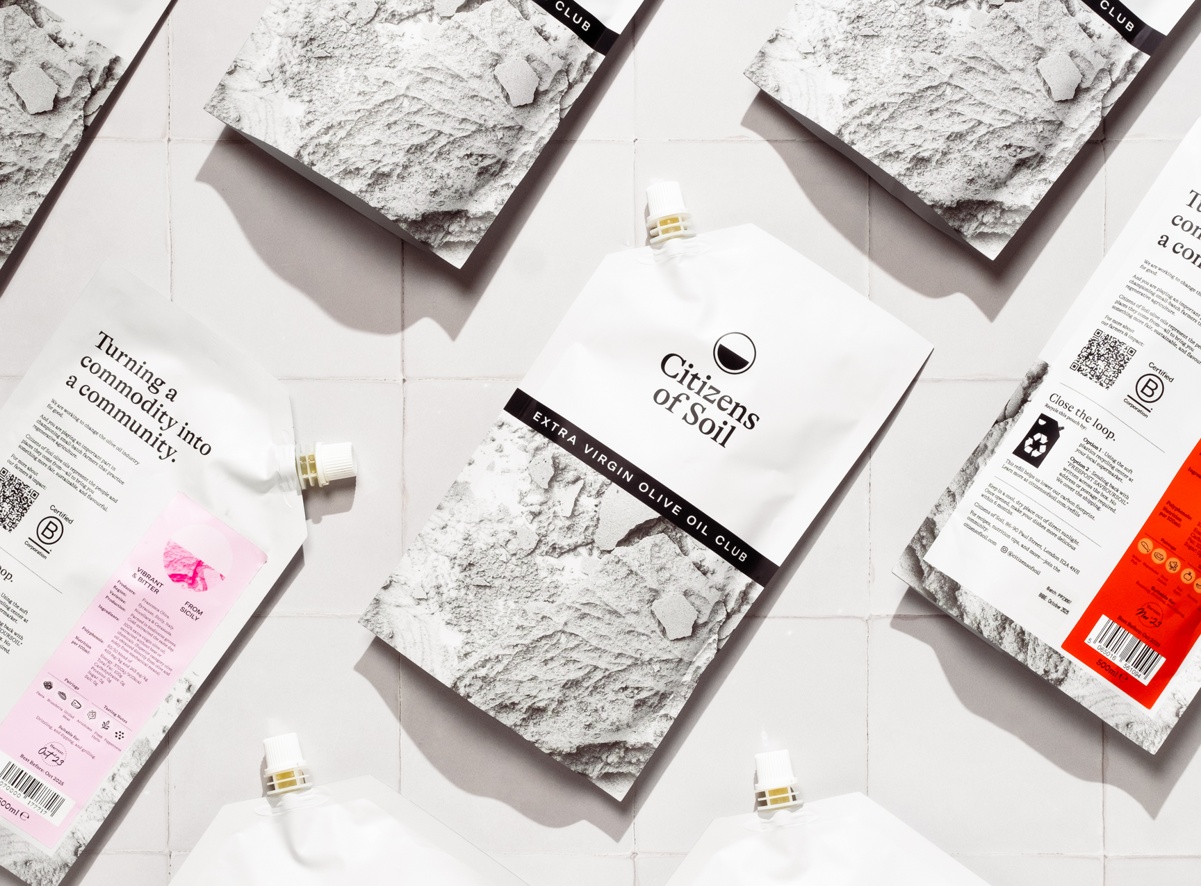 Due to the nature of extra virgin olive oil, these multi-layer plastic pouches are the best solution available. We've spoken to olive oil and sustainability experts alike—and this is the best format to keep the oil in its top-quality condition while keeping the carbon impact and packaging waste low.